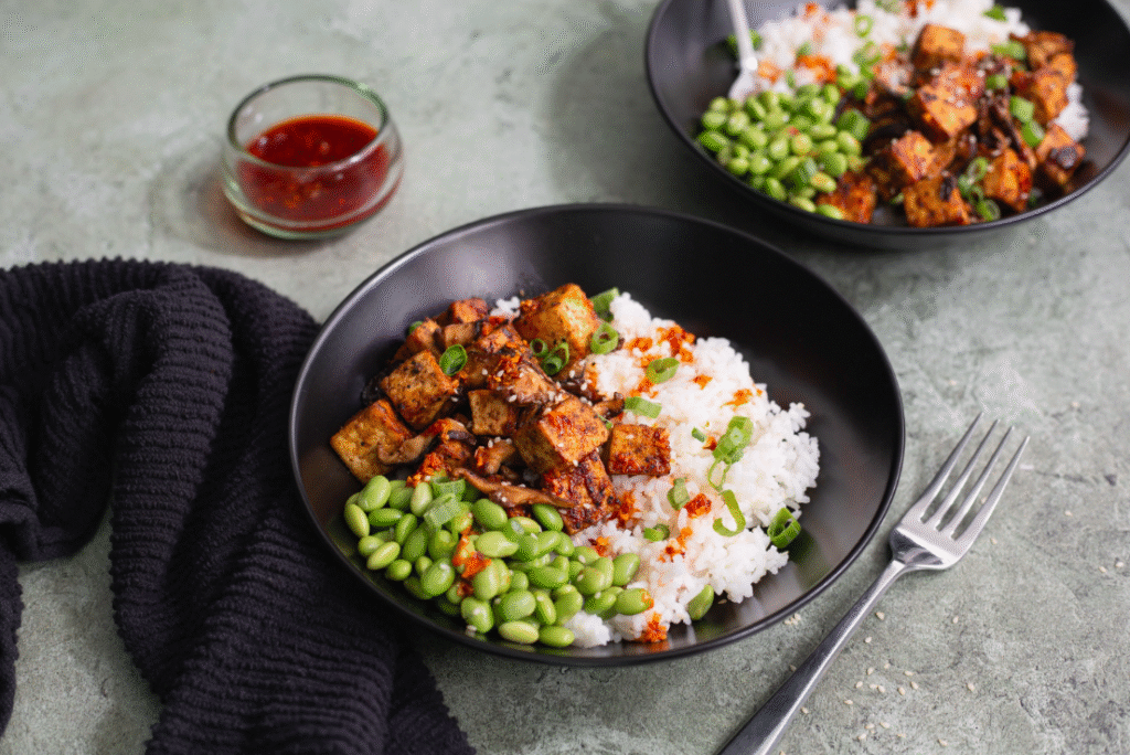 Umami Tofu and Mushroom Rice Bowls
