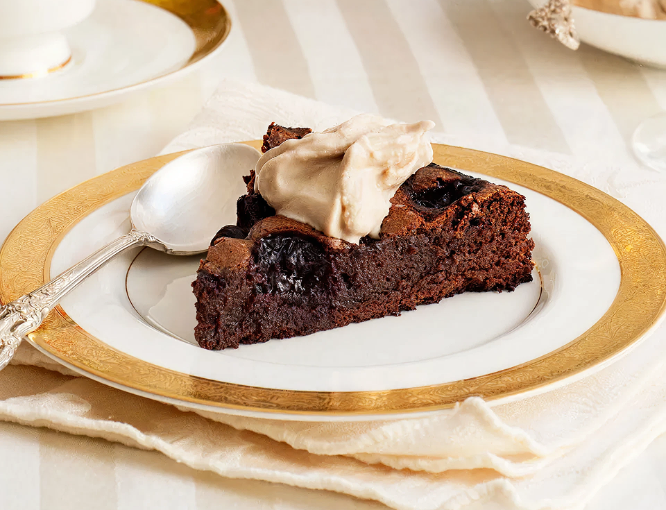 Get the recipe for a delectable cherry chocolate cake.
