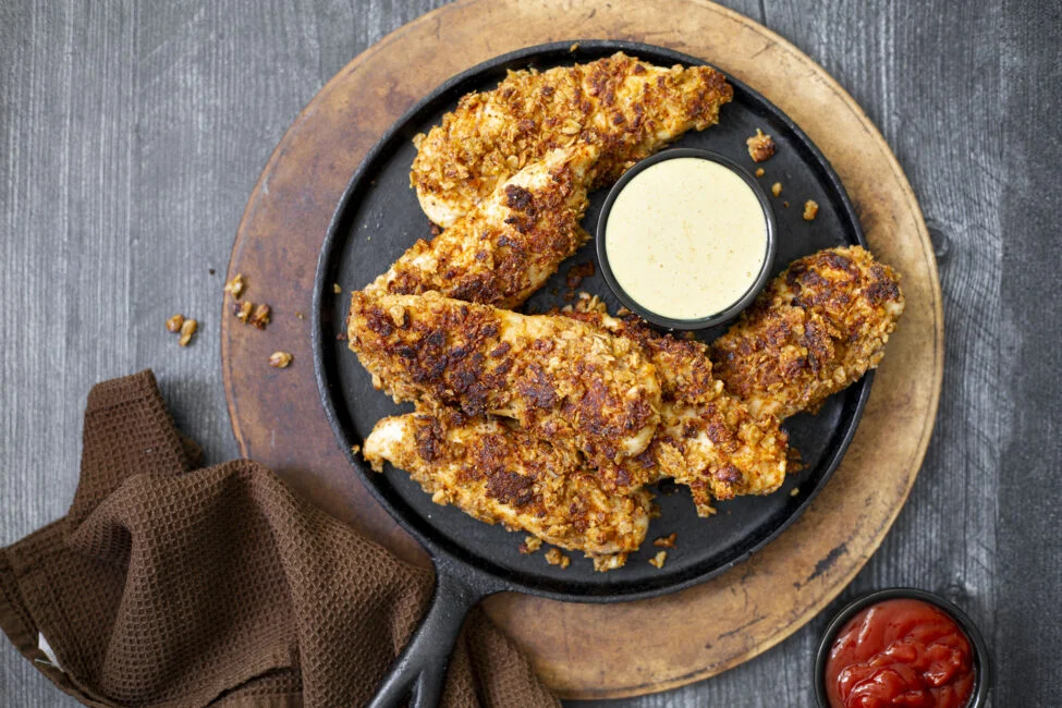 - Heat oil in a cast iron or heavy skillet and sear the pork all sides until golden brown.